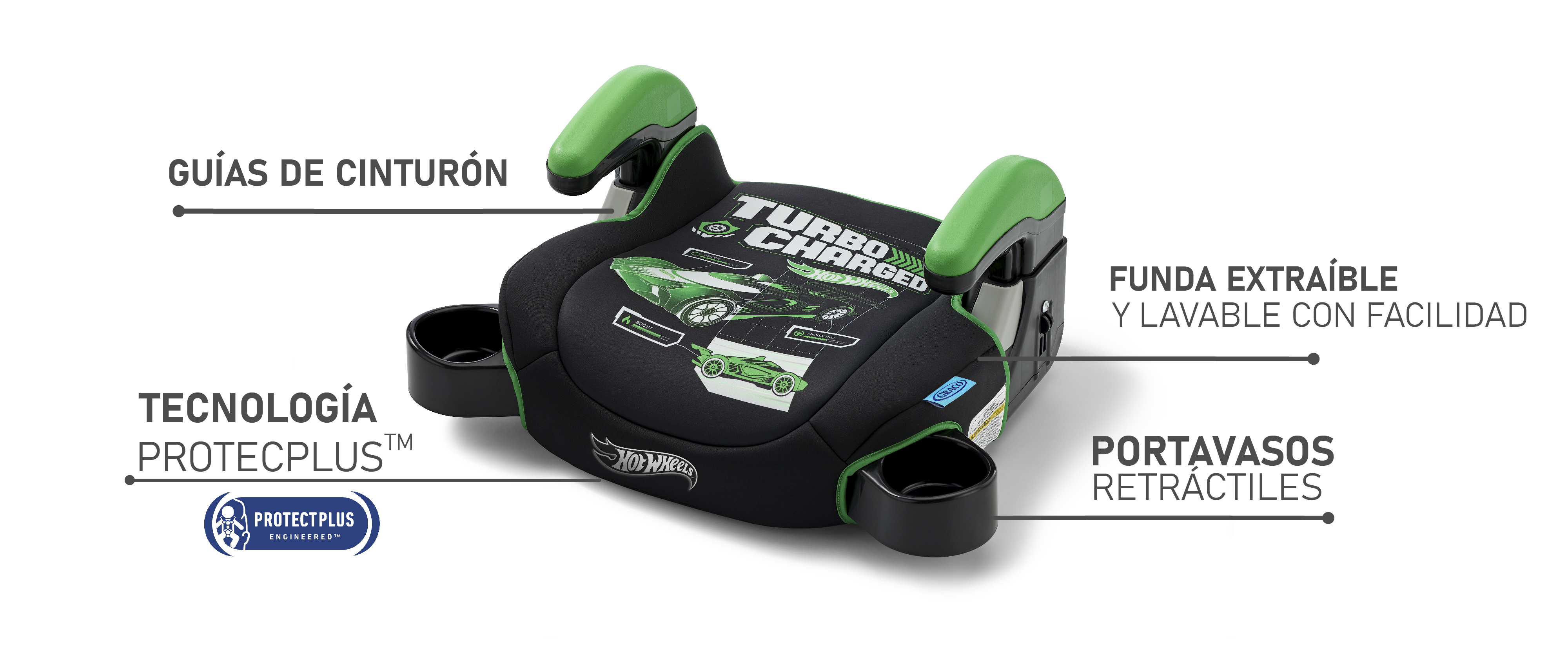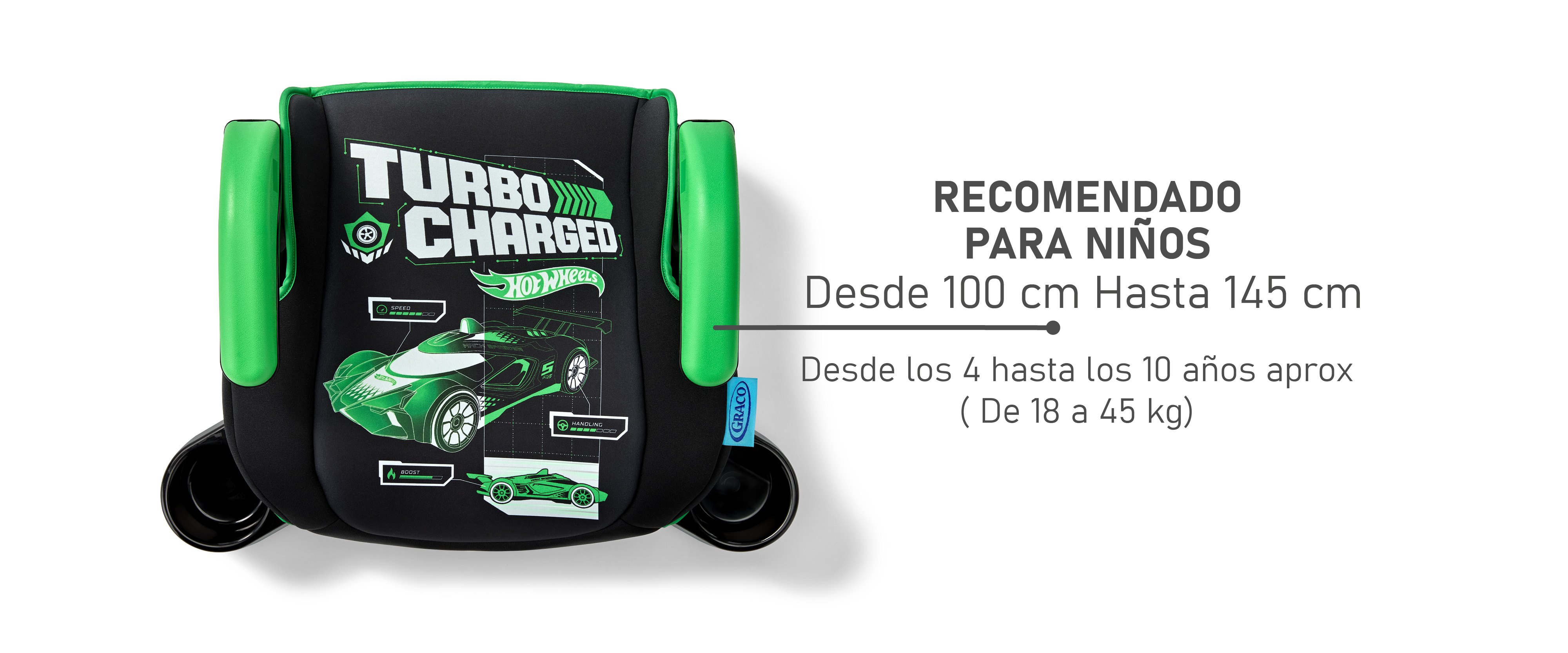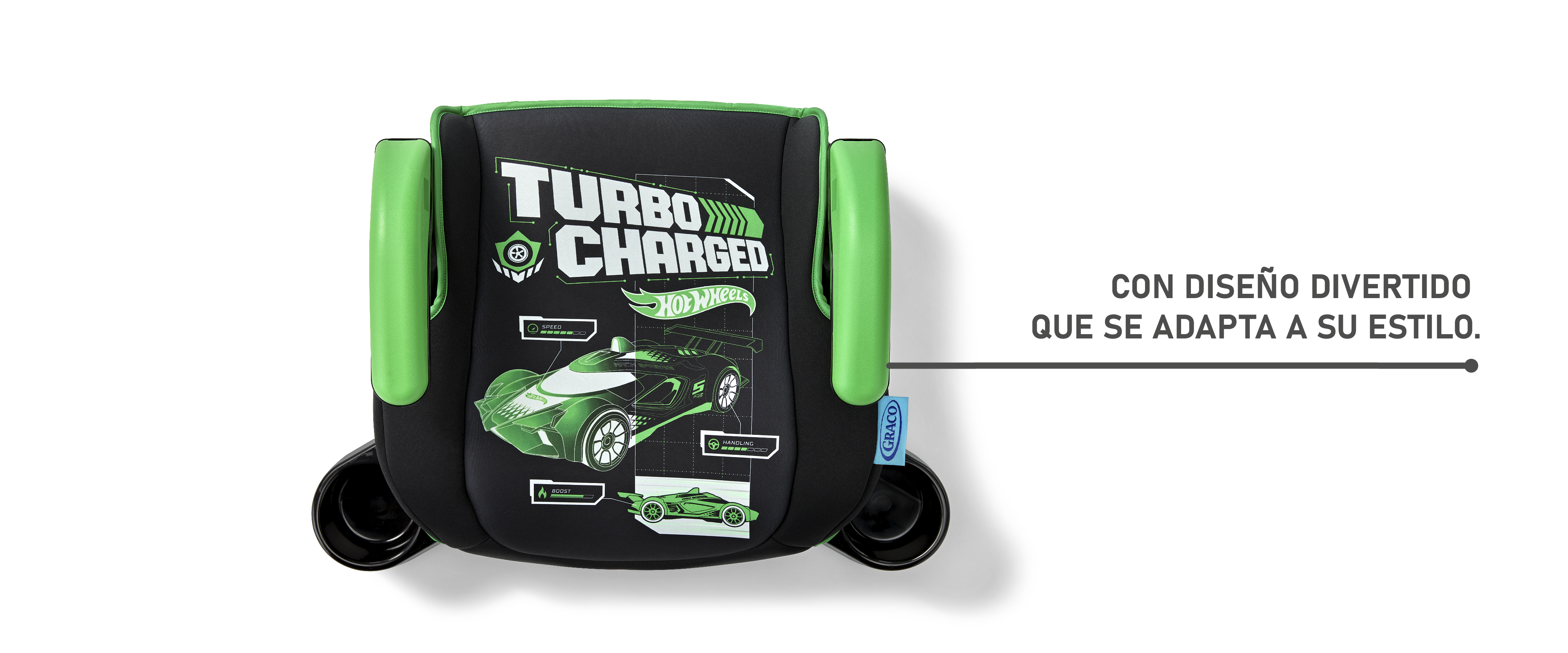 El asiento elevador sin respaldo TurboBooster® Backless 2.0 Hot Wheels x Graco® está diseñado para brindar seguridad y comodidad a niños en crecimiento, elevándolos a la altura adecuada para un ajuste correcto del cinturón de seguridad del vehículo.