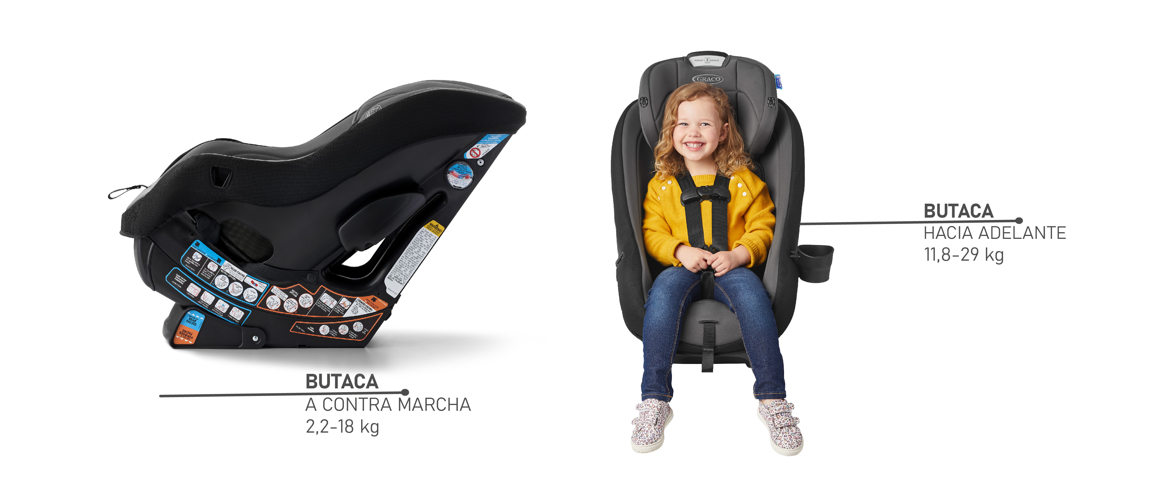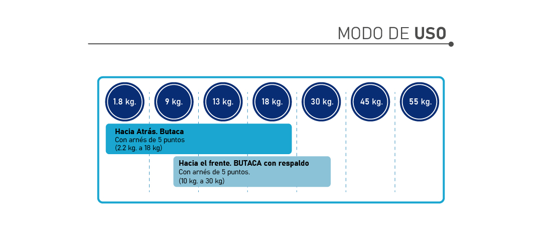 ¡Cumple con las primeras 2 etapas, la primera etapa es desde el nacimiento hasta los 18 kg vamos mirando a contra de la marcha, una vez superado ese peso, iniciamos la segunda etapa es mirando a favor de marcha hasta los 30kg!